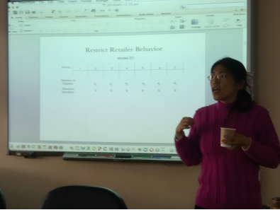Arvind Sainathan教授报告名称为“Pricing and Prioritization in a Duopoly with Self-Selecting, Heterogeneous, Time-Sensitive Customers”。报告详细描述了双头垄断下多类型时间敏感客户情形下定价和客户优先级排序问题。其中涉及两个服务供应商的三阶段博弈,包括:供应商确定提供单一还是差异化的服务,制定价格策略,客户自己选择和决定他们的购买行为。