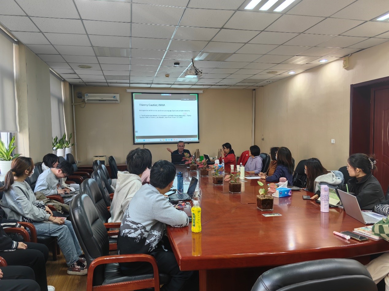 2023年11月22日下午,为进一步提升公司在计算机领域的学术能力,也为青年教师提供更多的国际学术合作机会,beats365亚洲版官网邀请Jean-Pierre Talpin教授(以下简称JP教授)一行在beats365亚洲版官网216会议室围绕软件系统形式化验证、软件系统安全等领域开展了讲座并进行深入交流。JP教授是法国国家信息与自动化研究所(INRIA)的高级研究员,领导TEA科研项目。目前主要研究方向有系统设计的并发性、信息物理系统(CSP)的组合方法和程序验证等。JP教授在国际学术期刊或会议上共发表了100余篇论文,担任10多个论坛、会议的委员会成员,并与Mads Tofte一起获得2004年ACM最具影响力的POPL论文奖,与Pierre Jouvelot一起获得2012年ACM/IEEE LICS Test of Time奖。