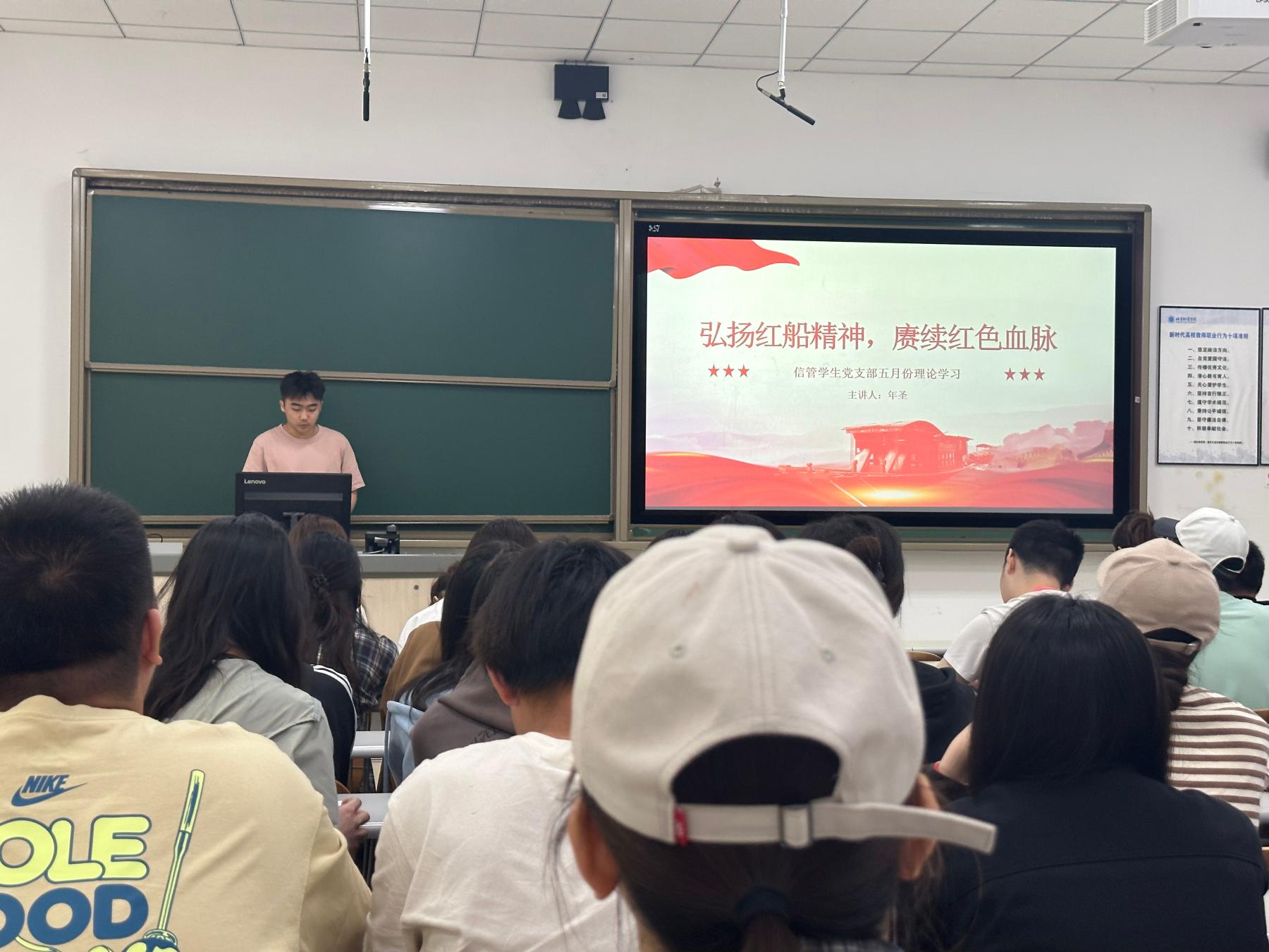 随后,支委年圣带领大家以“弘扬红船精神,赓续红色血脉”为主题进行专题学习。