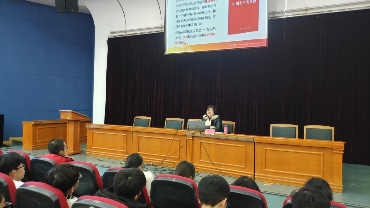 为扎实推进“不忘初心,牢记使命”主题教育,引导员工党员及入党积极分子立足学习本职,不忘初心,发挥模范带头作用,2019年11月27日下午2:00,周丽经理在国交二层报告厅为部分员工党员和19级入党积极分子讲授主题教育专题党课。