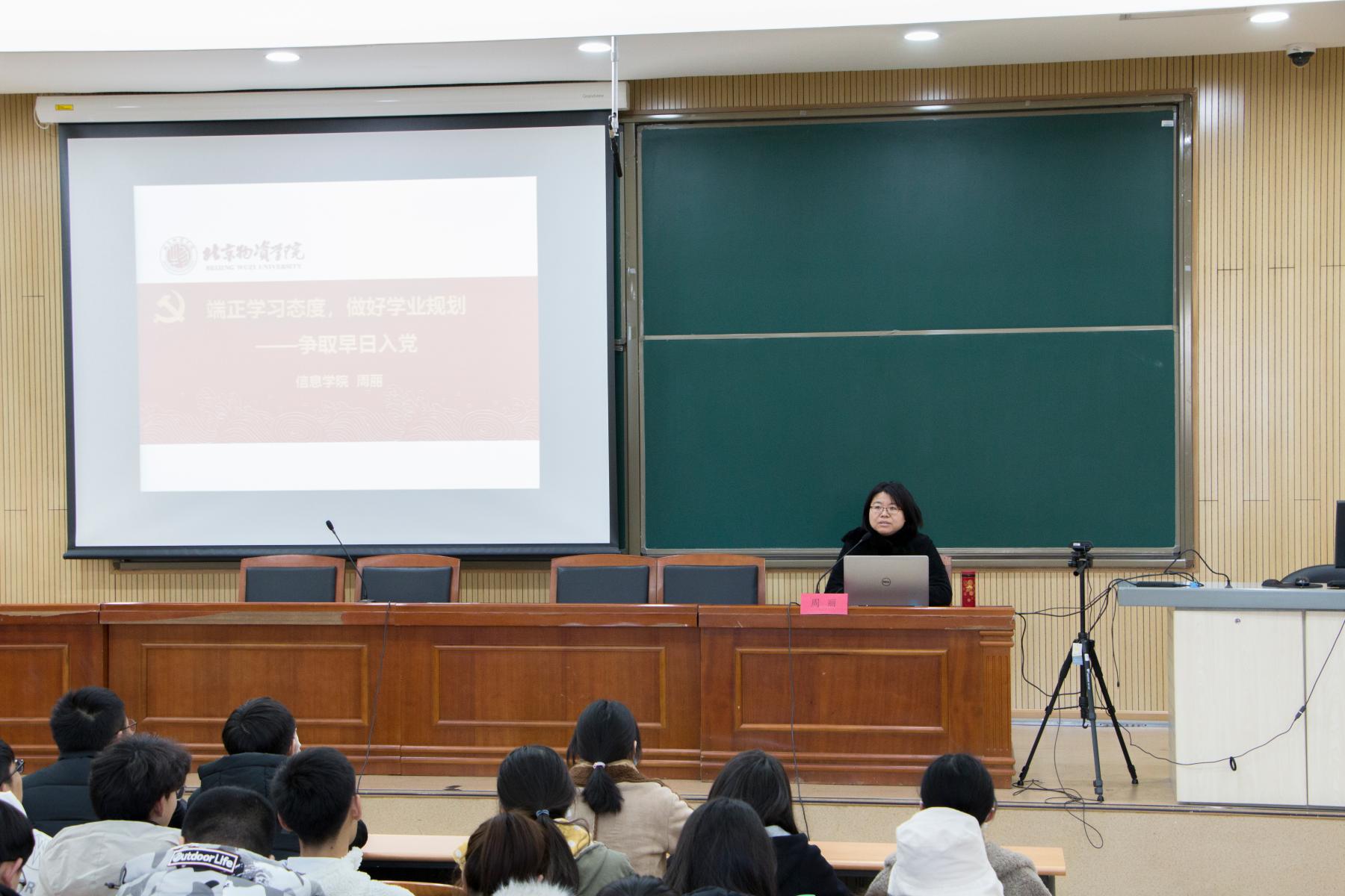 为鼓励入党申请人和积极分子在学风建设中发挥先锋模范作用,进一步端正入党动机,12月4日下午13:30,教务处长、beats365亚洲版官网经理周丽同志在二教一报为beats365亚洲版官网2020年度“入党积极分子培训班”做学风建设专题报告。报告由辅导员武成彬老师主持。