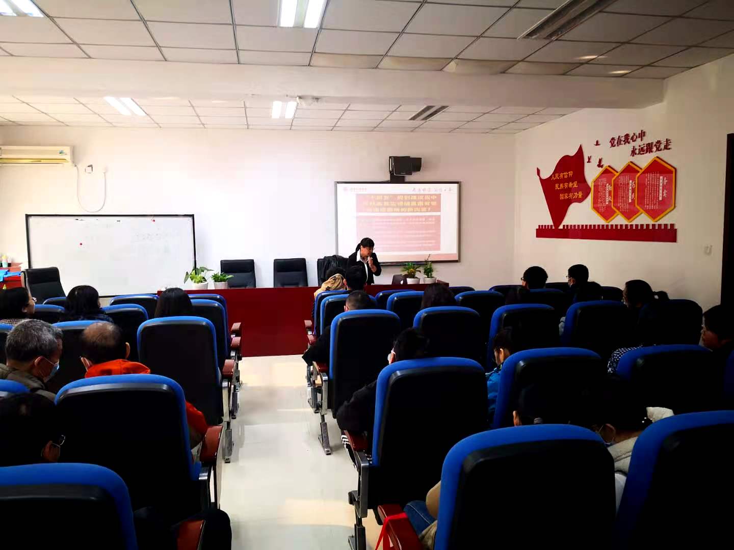 秦惠林老师作为主讲人对党的十九届五中全会重要看点做了简要介绍,并重点就全会通过的《中共中央关于制定国民经济和社会发展第十四个五年规划和二〇三五年远景目标的建议》重点内容进行了分享解读。随后,针对第三季度交纳党费相关事宜及党费计算政策,秦惠林老师向与会人员进行了详细解释。