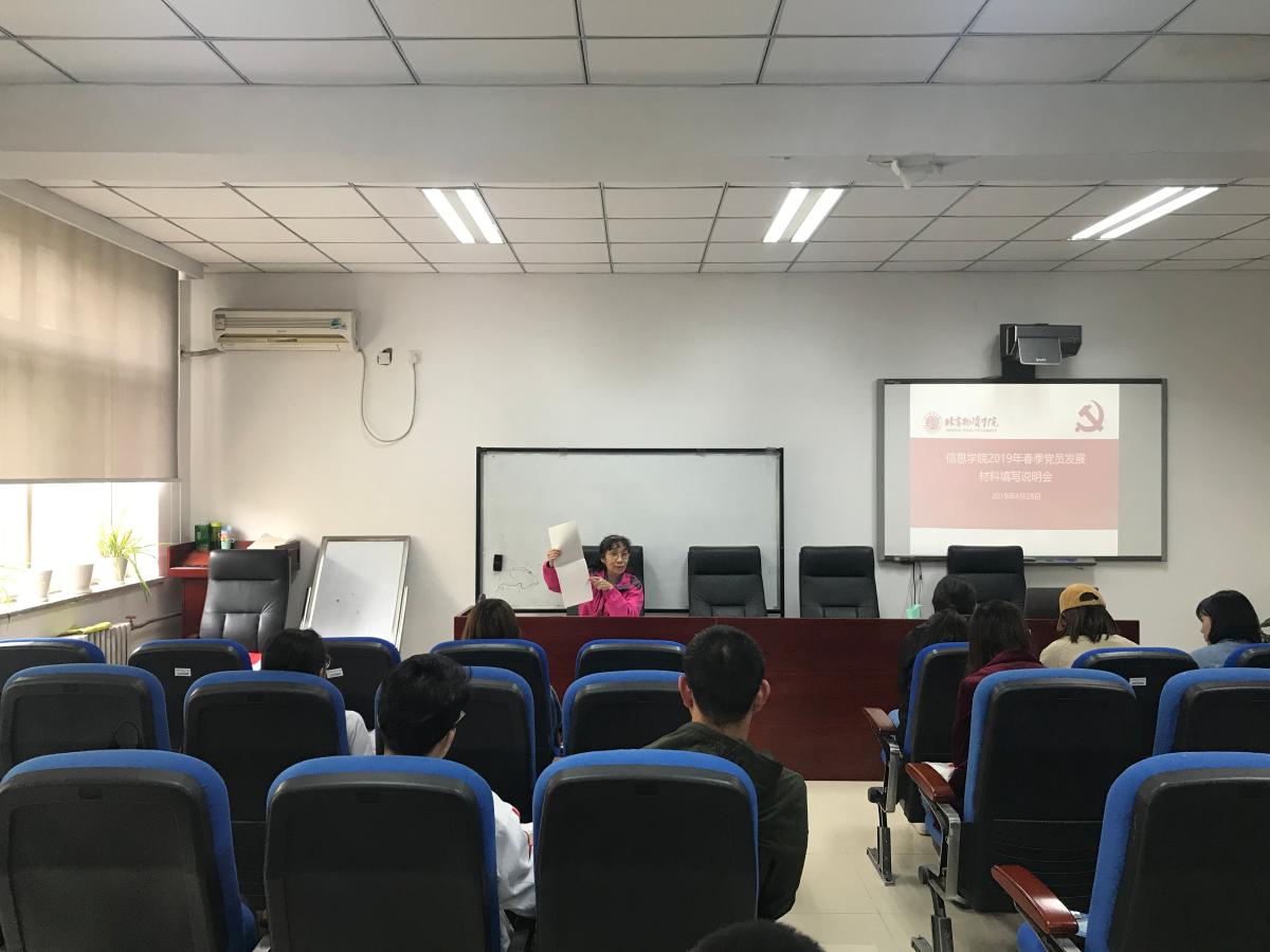 为规范党员发展入档材料,进一步做好党员发展工作,2019年4月28日13:00,beats365亚洲版官网于南实203会议室召开2019年春季党员发展材料填写说明会,beats365亚洲版官网特邀组织员包草原老师参会作专题说明讲解。