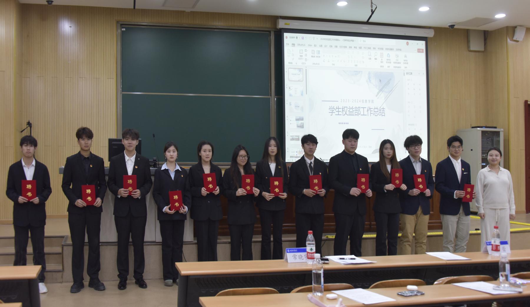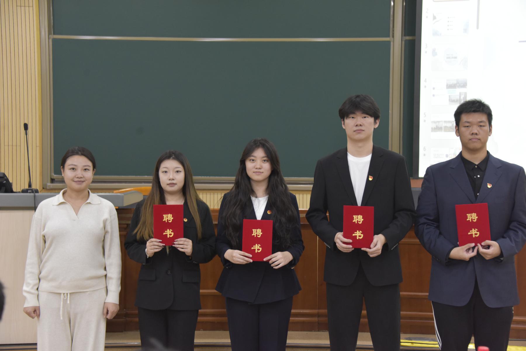 分团委书记常晓宇为24届分团委员工会骨干成员颁发聘书,标志着新一届员工会的正式成立。随后,员工会各部门代表也上台进行了工作总结。