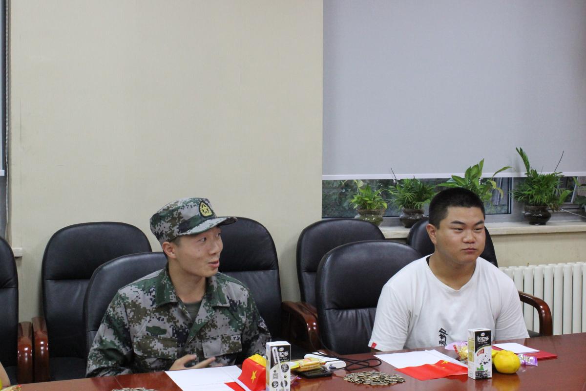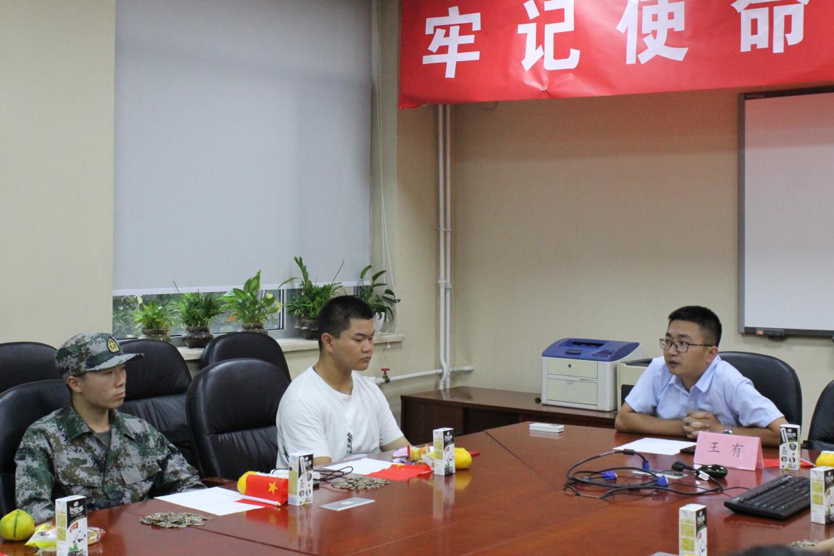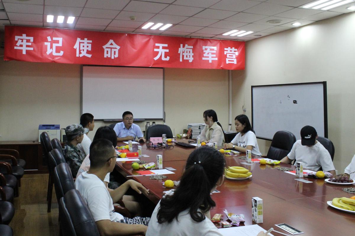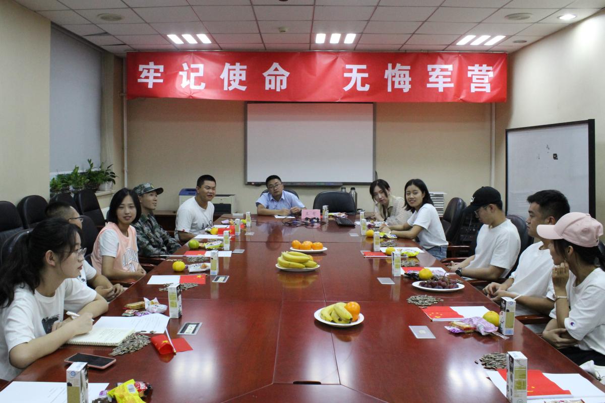 2019年9月9日17:40,beats365亚洲版官网在南实验楼216会议室举行新兵老兵座谈会,欢送2019年入伍新兵出征,欢迎退伍老兵回校。beats365亚洲版官网党委副书记王有、分团委书记丁悦出席座谈会并与新老兵同学们亲切交谈,代表公司给予鼓励、提出期望。
