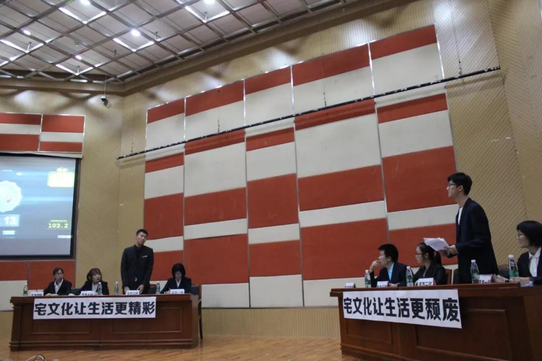 首先出场的是物联网一班和计算机一班,本场比赛的辩题为“宅文化使生活更精彩/颓废”。本场比赛由计算机一班率先获得胜利。