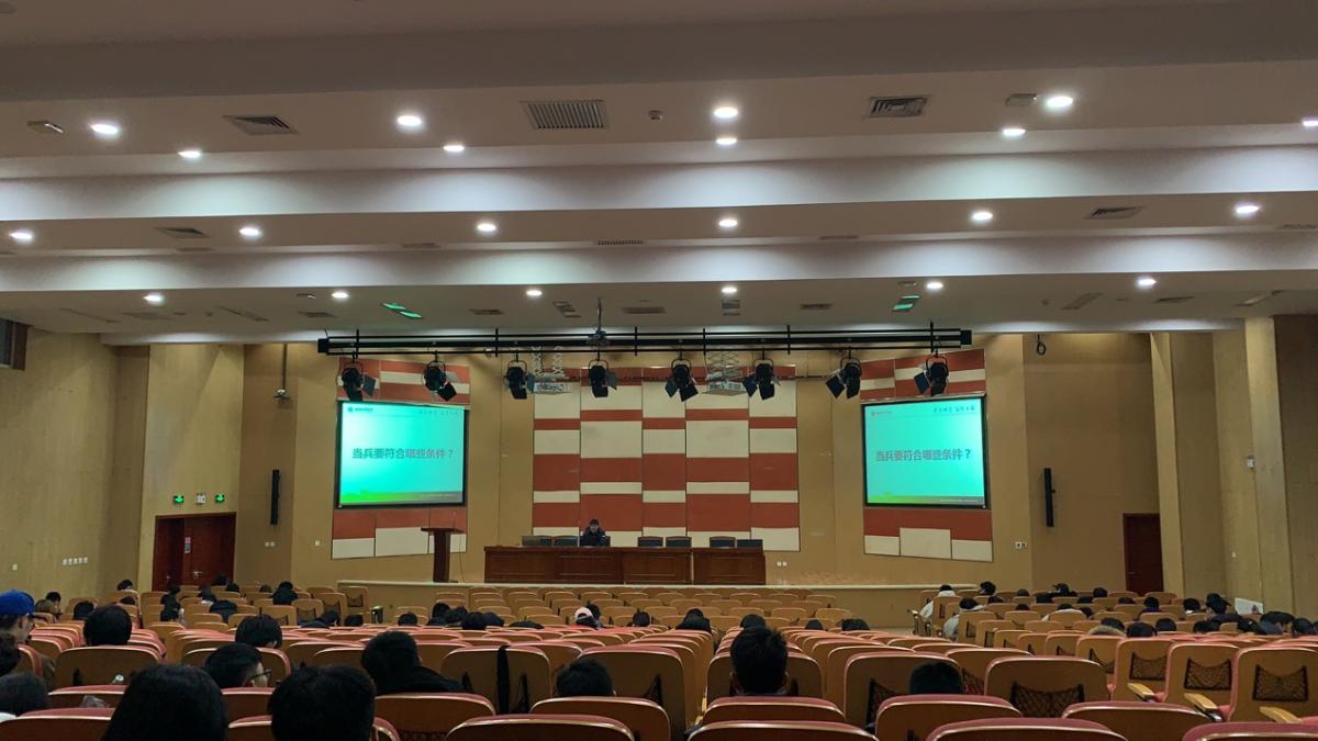 首先,李坤老师进行了参军入伍政策的宣讲,为同学们讲解了对入伍的优待,入伍的条件和报名入伍的流程。详细的介绍了关于入伍的相关细则,为同学们解答疑惑。