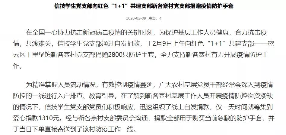作为信管员工党支部书记,他通过线上渠道征集视频、普及抗疫,信管员工党支部党员及积极分子为湖北捐款超过1.6万元。