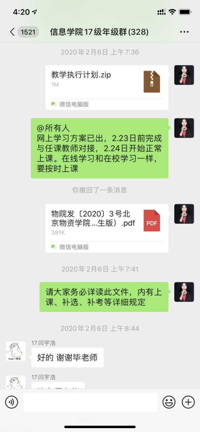同时,作为毕业年级辅导员,他积极联系组织线上春招,发布相关招聘信息。并在北物信息墙分享自己考研经历给想考研出国的员工以作参考。