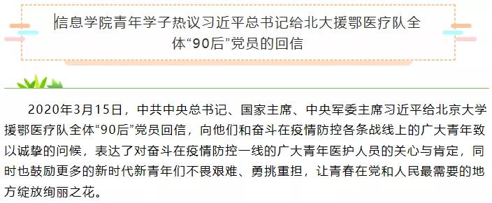 beats365亚洲版官网青年学子热议习近平总书记给北大援鄂医疗队全体“90后”党员的回信