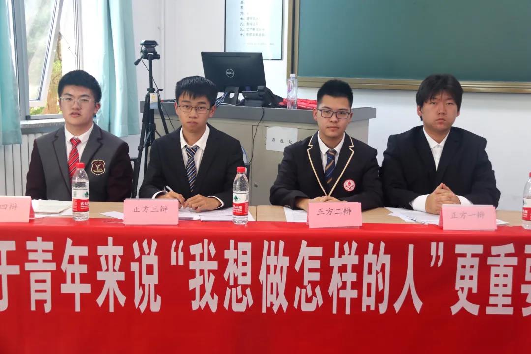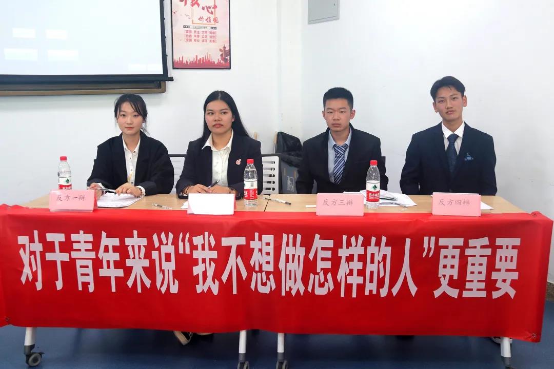 第一场的对阵双方:正方计算机一班 ,反方物联网一班。双方就:‘对于青年来说,“我想做怎样的人”/“我不想做怎样的人”更重要’这一辩题展开激烈的讨论。正方认为“青年人有明确的目标是最重要的”;反方则以“不好的事物更容易被发现,排除缺点才能发现闪光点”进行论述。获得最佳辩手的是计算机一班周晟宇同学。