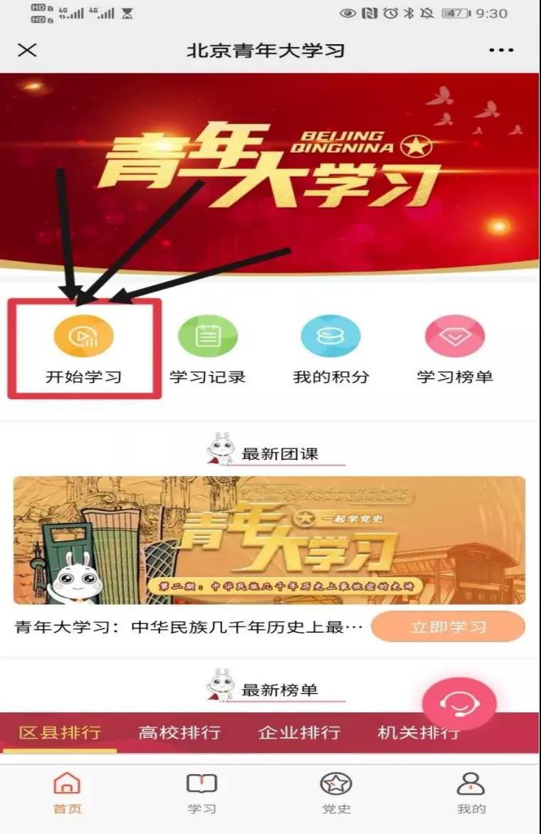 2.进入学习页面,登录成功后,点击开始学习