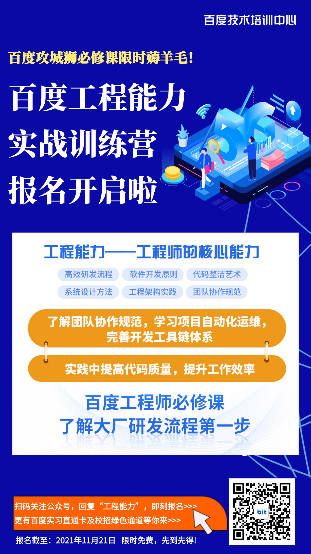 百度技术公司和白云山合作做工程师培训赋能和职业等级认证的。面向计算机相关专业大二到研究生同学,提供百度的实战课程,完全免费,后续没有任何收费环节,主要目的是提升百度技术影响力,提高同学的技术实战能力、专业能力和就业竞争力。学完进入百度实习和就业绿色通道,免笔试直通面试。