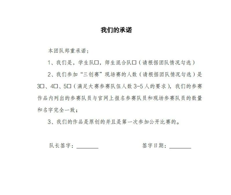 5.参赛团队的成员信息、参赛作品名及作品摘要必须在报名之后上传到官网,在3月1日校赛管理员审核截止前可以修改,3月1日(大赛规定的校赛开始时间)后不得更改。如果遗漏或者填写错误导致在比赛时提交的团队成员信息、参赛作品名及作品摘要与官网上填写的信息不一致,则按规则被作为违规处理,将取消团队比赛成绩。