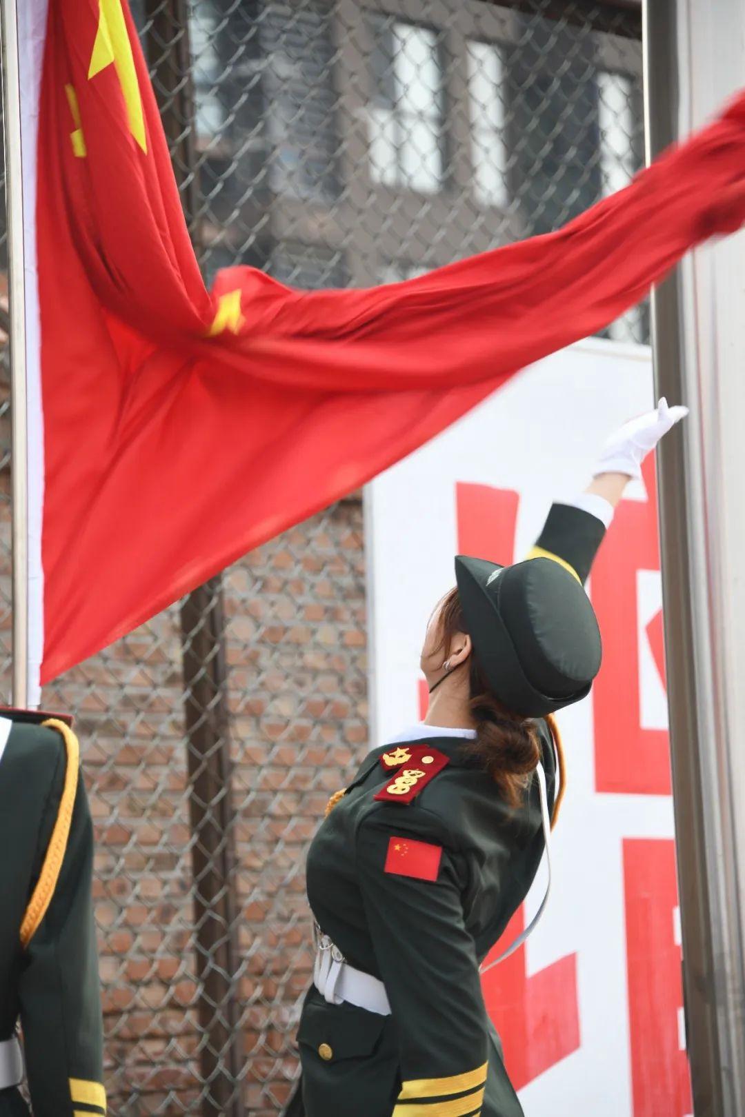 闭营仪式在庄严的国歌中拉开帷幕,五星红旗冉冉升起,全体成员面向国旗肃立致礼 齐唱国歌。