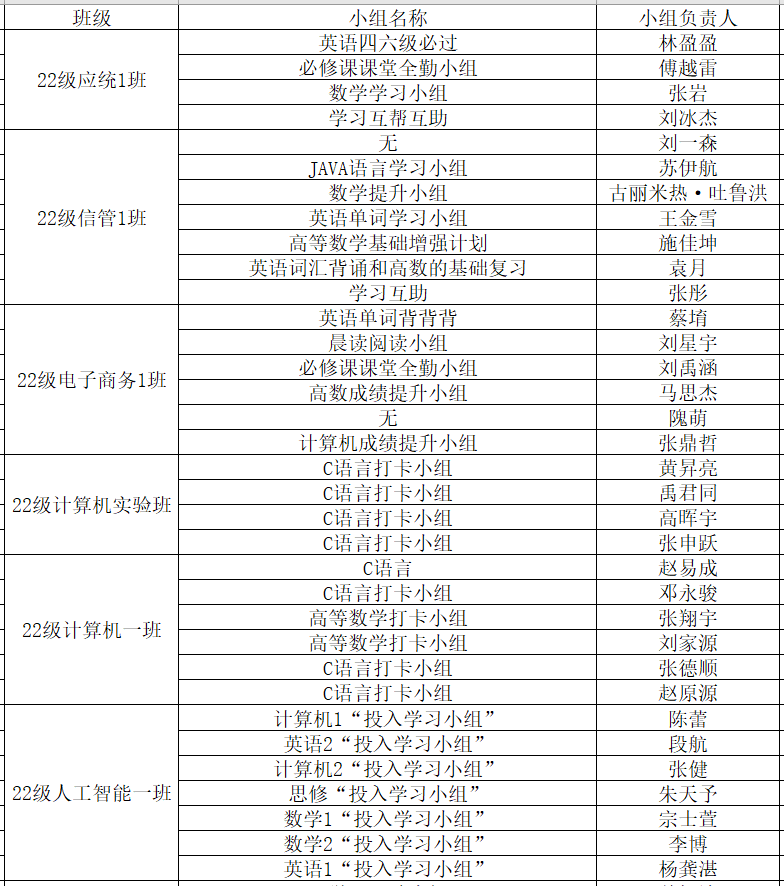 立项成功的“投入式学习小组”从2022年10月31日开始投入建设,每班设置1-2名学风督导岗党员,每两周对负责班级的投入式学习小组建设进行考核。