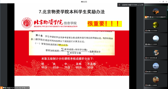 参与答辩的各班都做了充分的准备,并从班级学习效果、学风建设特色、问题及解决方法几个方面,阐述了各班上学年的整体学习情况。