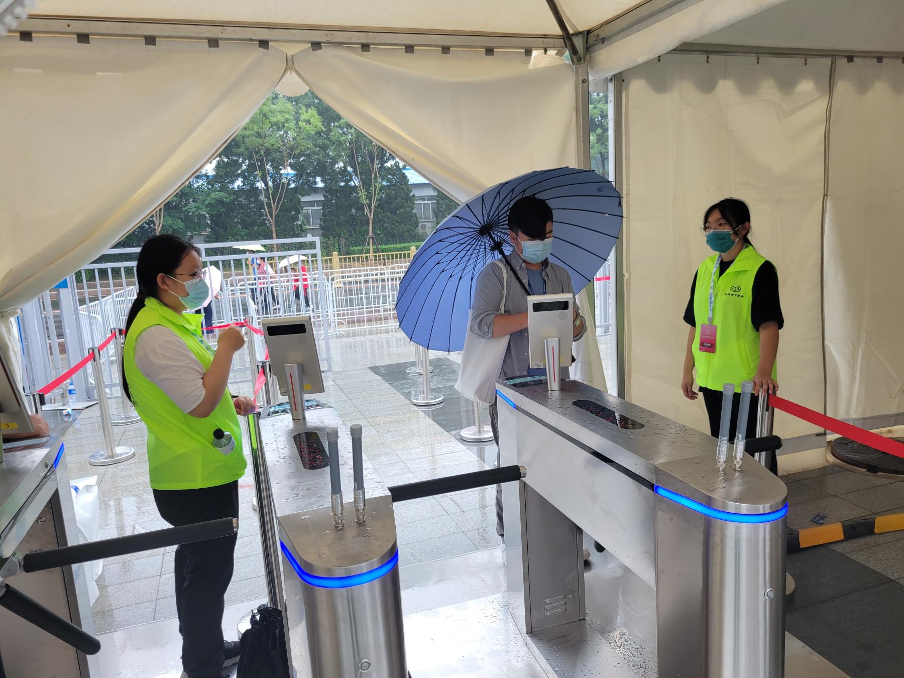 安检&园区指引:在园区的西侧和南侧的所有可通行的入口,均安排了志愿者,负责查验人员是否购买了门票、核酸情况和健康宝是否正常等,为园区的安全提供了硬性的保障。进入园区后也安排了负责园区指引的同学,为游客以及参会人员提供路线指引和帮助。