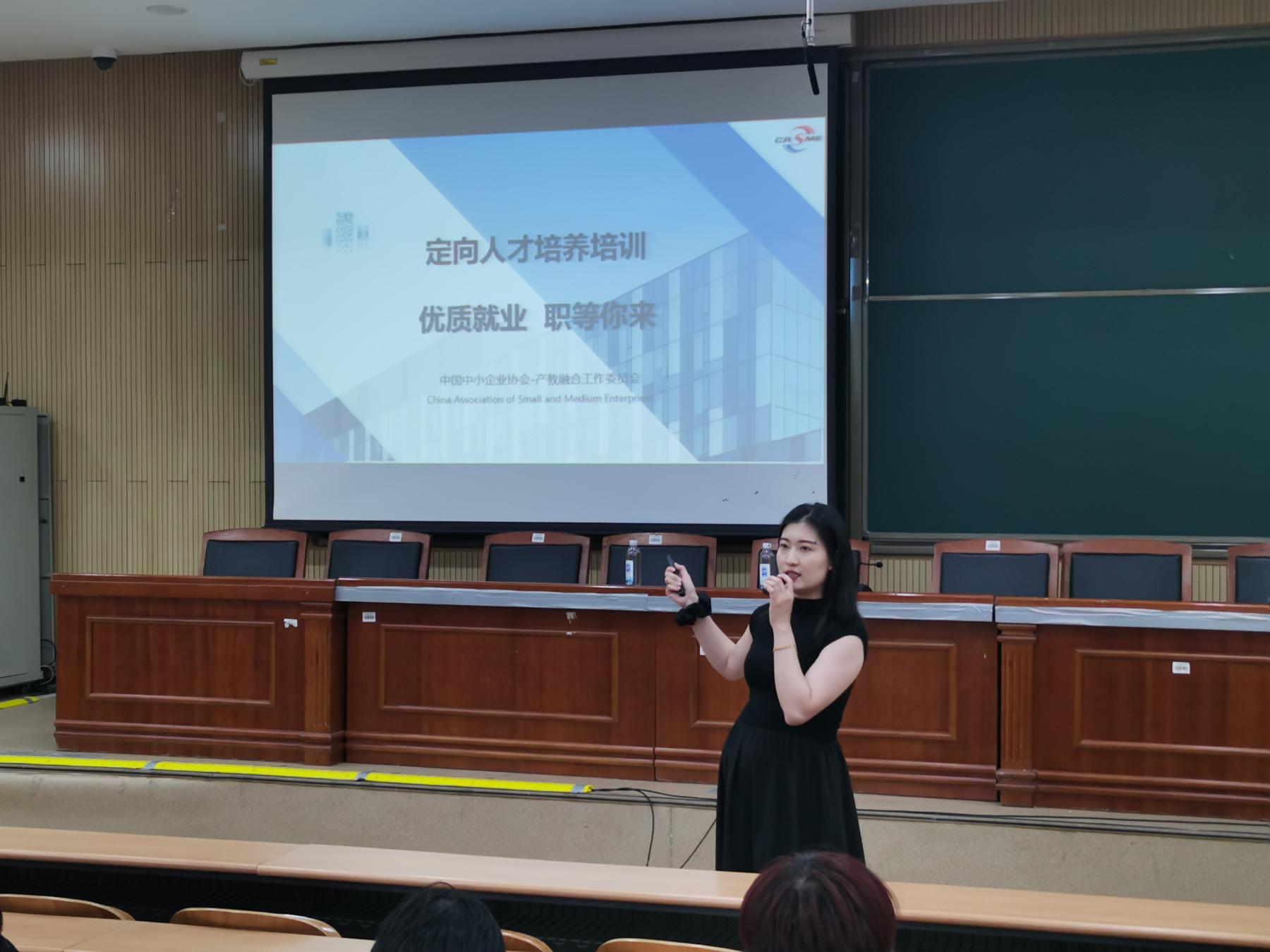 郝爽首先从当前严峻的就业形势分析入手,深入剖析了毕业生在就业市场上面临的挑战。接着郝爽对中国中小企协会的基本概况进行讲解,介绍了协会对接的丰富企业资源,重点讲解协会推出的定向人才培养培训项目,详细介绍了人才培养项目的优势以及在就业育人项目中取得的显著成果。最后,针对同学们提出的问题,郝爽进行了认真解答。
