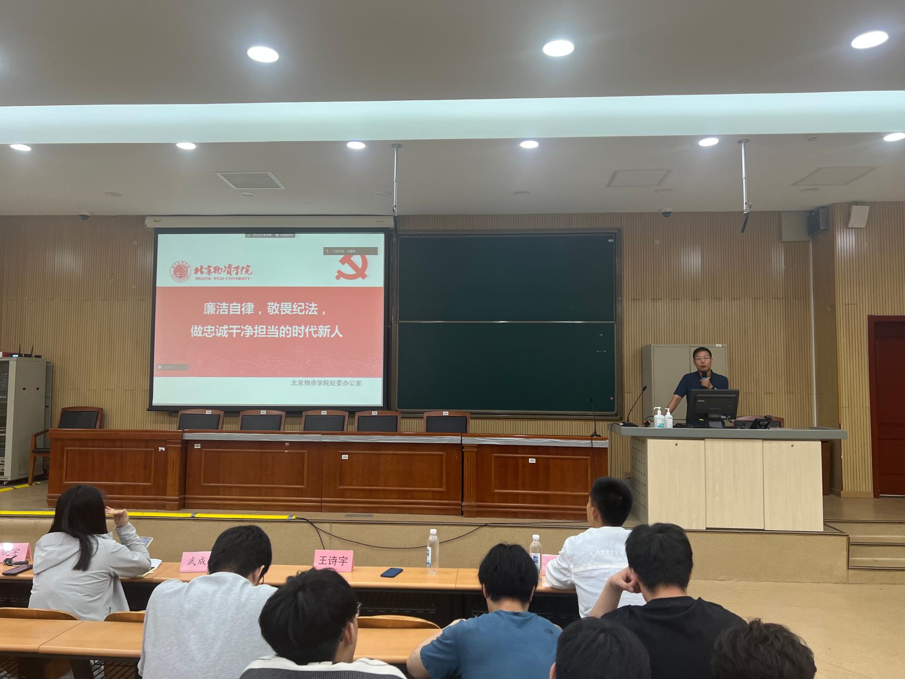 会议的最后环节,由武成彬为毕业生开展廉洁教育大思政课。结合恶意拖欠国家助学贷款、就业过程中的诚信缺失以及年轻从业者的职务犯罪等真实警示案例,他着重强调了廉洁从业在职业生涯中的重要性,呼吁同学们离开校园后始终保持对党纪法规的敬畏,扣好廉洁从业的人生第一粒扣子。随后,他还介绍了党组织关系转接的相关事宜。最后,武成彬向即将踏入社会的毕业生们送上了真挚的祝福,表达了对毕业生美好未来的殷切期望。