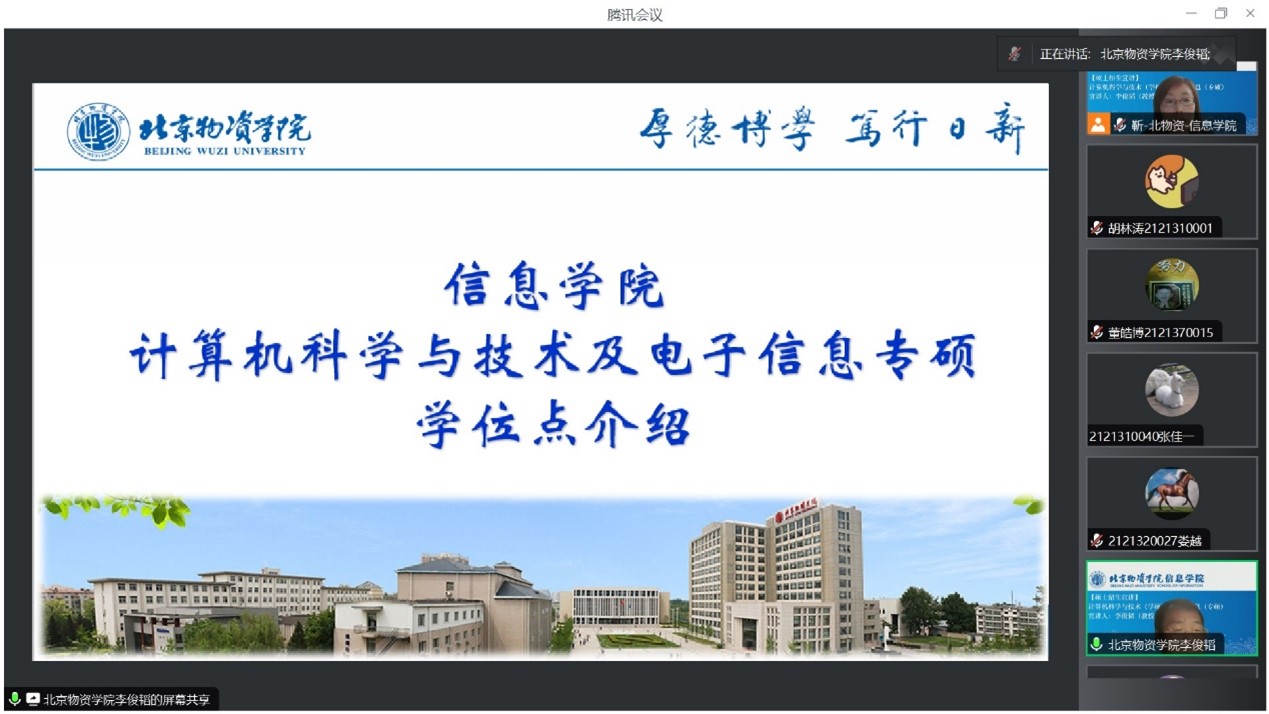 为了提升计算机科学与技术学术型硕士及电子信息专业型硕士两个学位点的招生影响力,beats365亚洲版官网在2024年10月13日晚上7点30分,通过线上平台对2025年的硕士研究生招生进行推广介绍,计算机学科的李俊韬教授作为电子信息专硕点负责人,与靳老师以及部分考生参加了此次会议。