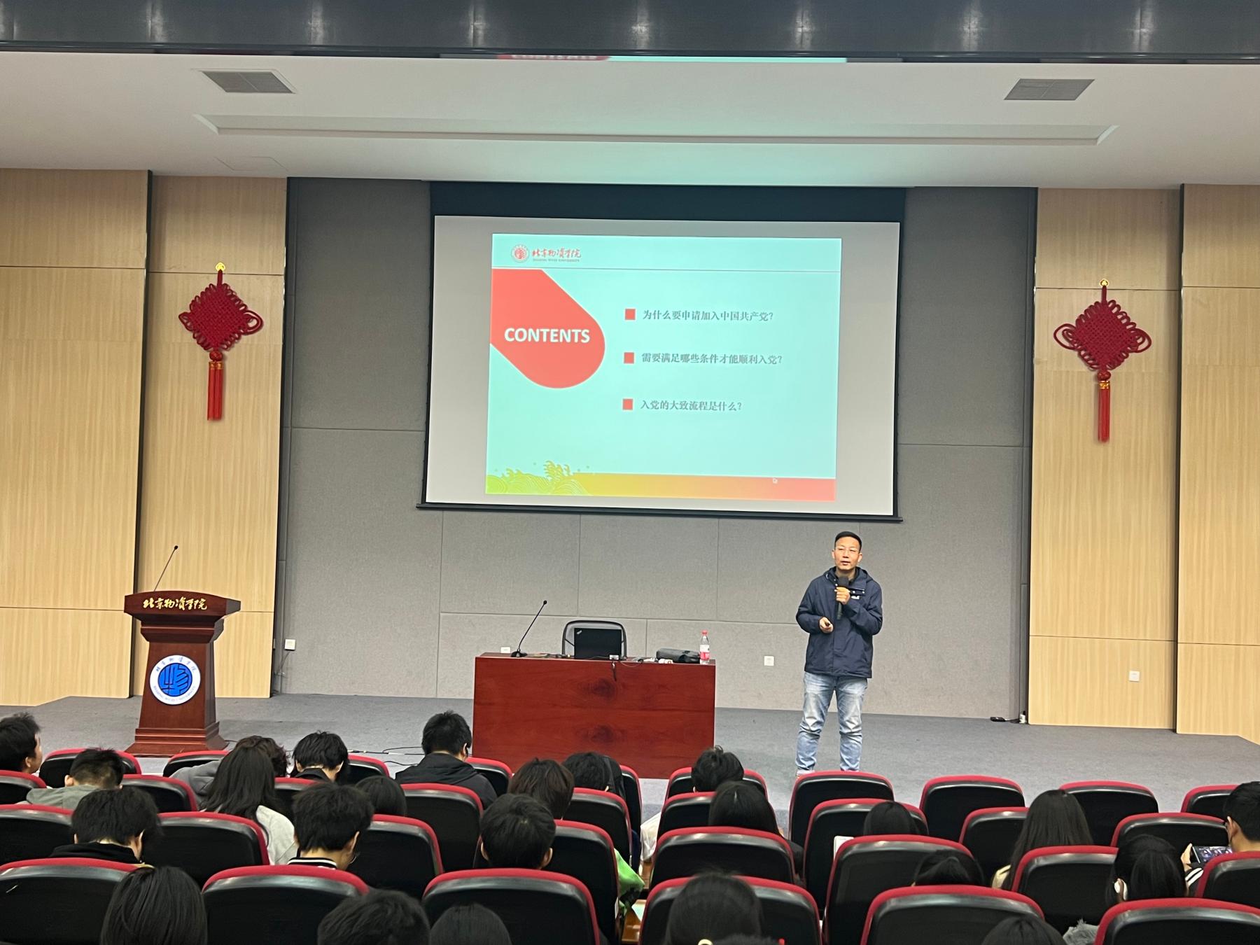 首先,武成彬从加入中国共产党的意义、条件及流程三个方面为新生讲授了一节意义非凡的入党启蒙课。他指出,申请加入中国共产党是一个神圣且光荣的决定,它不仅代表了一种积极上进的思想态度,更是申请者不畏艰险、敢为人先奉献精神的集中表达。作为青年学子,想要加入这一先进组织,就必须在各方面以高标准严格要求自己。努力学习,积极工作,以实际行动成为身边人的旗帜,积极投身公司建设,共创优良学风,成为品行端正,综合素质突出的新时代信息人才。