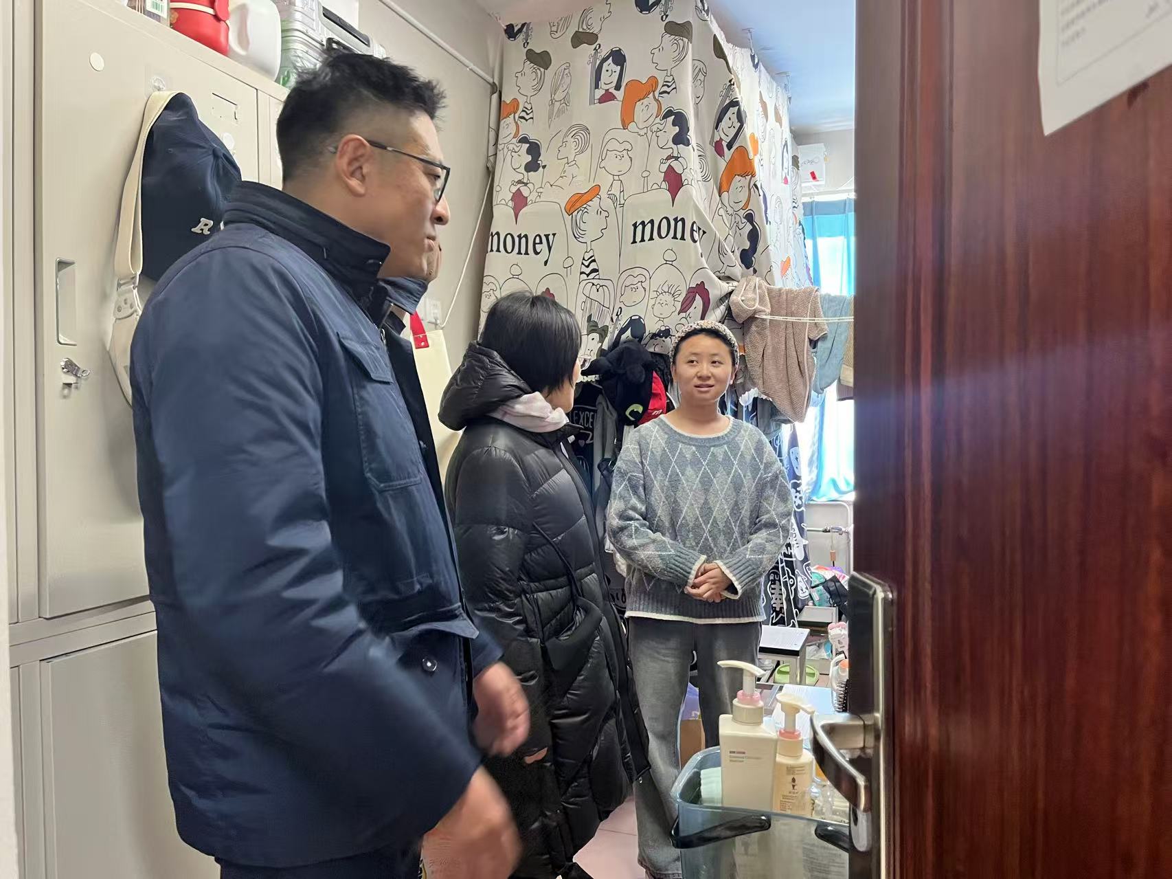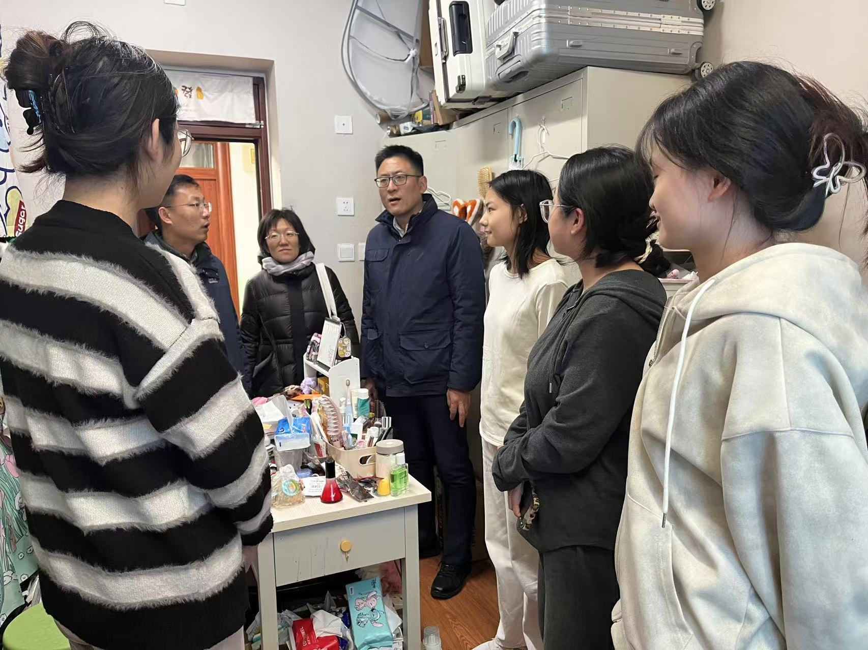 陈蕾重点关注同学们的考研准备情况。她详细询问了同学们的学习进度以及备考过程中遇到的困难。她鼓励大家要保持积极的心态,合理安排时间,注重复习效率,争取在即将到来的考试中取得优异成绩。武成彬更加关注同学们的日常生活和住宿环境。他叮嘱同学们要注意个人卫生,保持良好的生活习惯。同时,他也鼓励大家要相互关心、相互帮助,共同营造一个温馨、和谐的宿舍氛围。