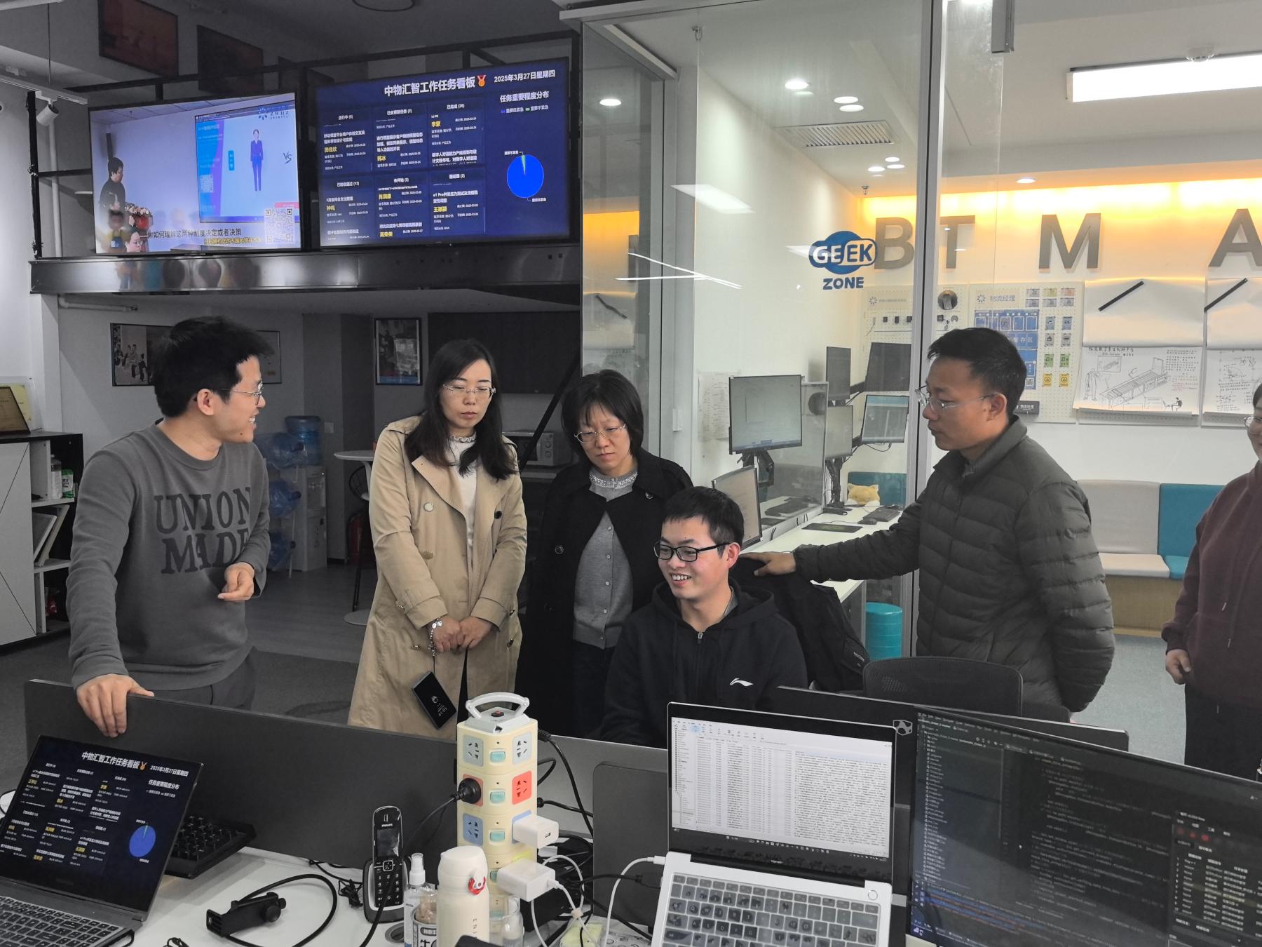 2025年3月27日上午,beats365亚洲版官网党委书记陈蕾率队赴员工企业北京中物汇智科技有限公司(以下简称中物汇智)开展校企合作调研,党委副书记武成彬、经理助理宋燕星参与调研。中物汇智首席执行官、2012届研究生员工陈星浩及相关部门负责人热情接待了调研组一行。双方就深化产学研融合、优化人才培养等议题展开深度交流。