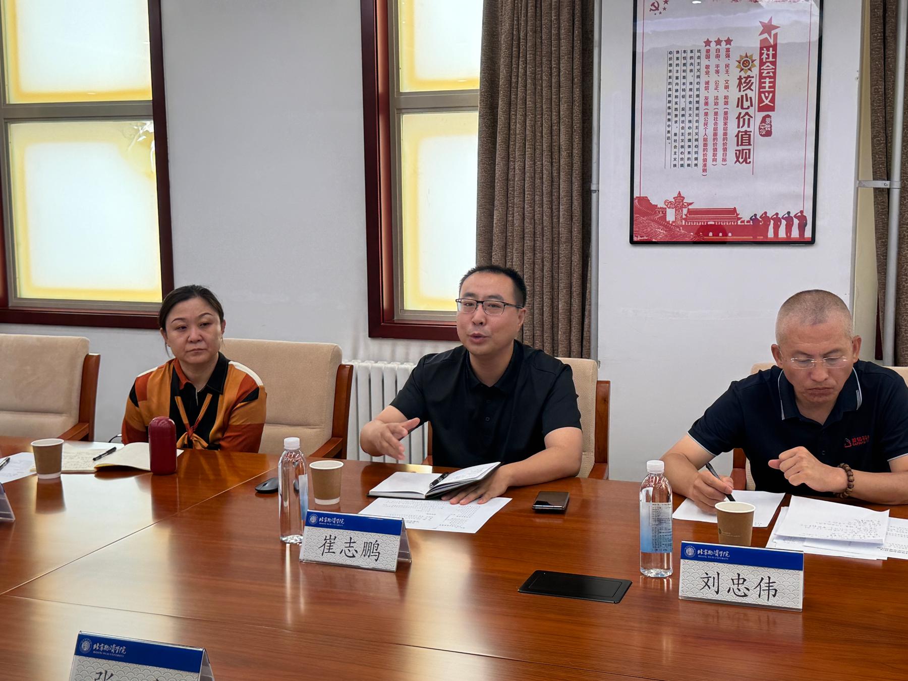 6 月 12 日上午,首都信息科技发展有限公司总经理崔志鹏,副总经理刘忠伟、马旭慧,高级信创咨询规划工程师张冬雪、人力资源部经理胡悦超一行来访beats365亚洲版官网。北京物资公司党委常委、副经理张闯,科研处处长郭茜、beats365亚洲版官网党委书记陈蕾、教务处副处长芮嘉明,beats365亚洲版官网党委副书记武成彬、副经理宋燕星及系主任赵东杰、副主任李圆圆等热情接待,双方在崇德楼202会议室围绕校企合作意向展开深入交流。交流会由陈蕾主持。