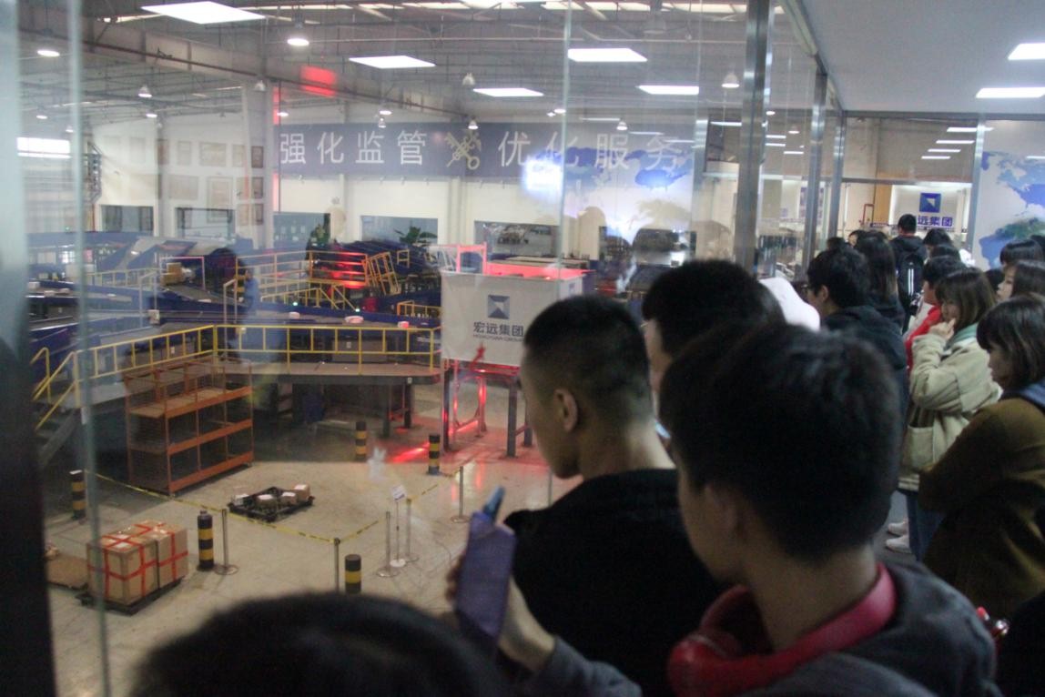 在宏远集团跨境电商直邮场站负责人的带领下,同学们先后参观了物流企业的智能化分拣设备,了解行业内先进的第三方物流运作模式以及与其他电商企业的合作方案。其中在大型分拣设备纵横的分拣室内,同学们领略了先进管理理念与现代化设备相互融合的无人化高效运作模式。同学们在此过程中表现出了极大的兴趣,积极踊跃提问,并纷纷对物流机械的设计及建设工作者们表达了敬佩之情。同时,beats365亚洲版官网李锋及刘婷婷与宏远针对于校企双方关于用人需求以及产学研合作的可能进行了调研和探讨。