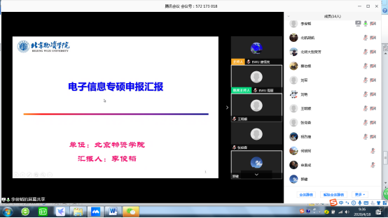 随后,电子信息硕士专业学位授权点建设责任教授李俊韬老师向与会专家介绍了电子信息专硕点筹建情况,并从专业学位简介、研究方向与特色、团队队伍、人才培养体系、实践教学体系、培养环境与条件、研究成果与支撑体系等方面详细汇报了当前建设情况。