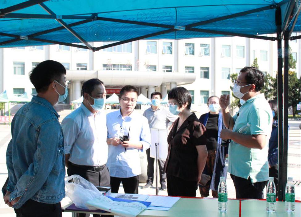 2020年9月19日上午,在新生报到期间,经理刘军、党委副书记沈小静、员工处处长丁健、市委教育工委安稳处副处长、驻校联络员李强等领导相继到迎新现场了解报到进展、慰问参加迎新服务的师生,并分别与现场报到的新生进行交流并对2020级研究生新生表示热烈欢迎。