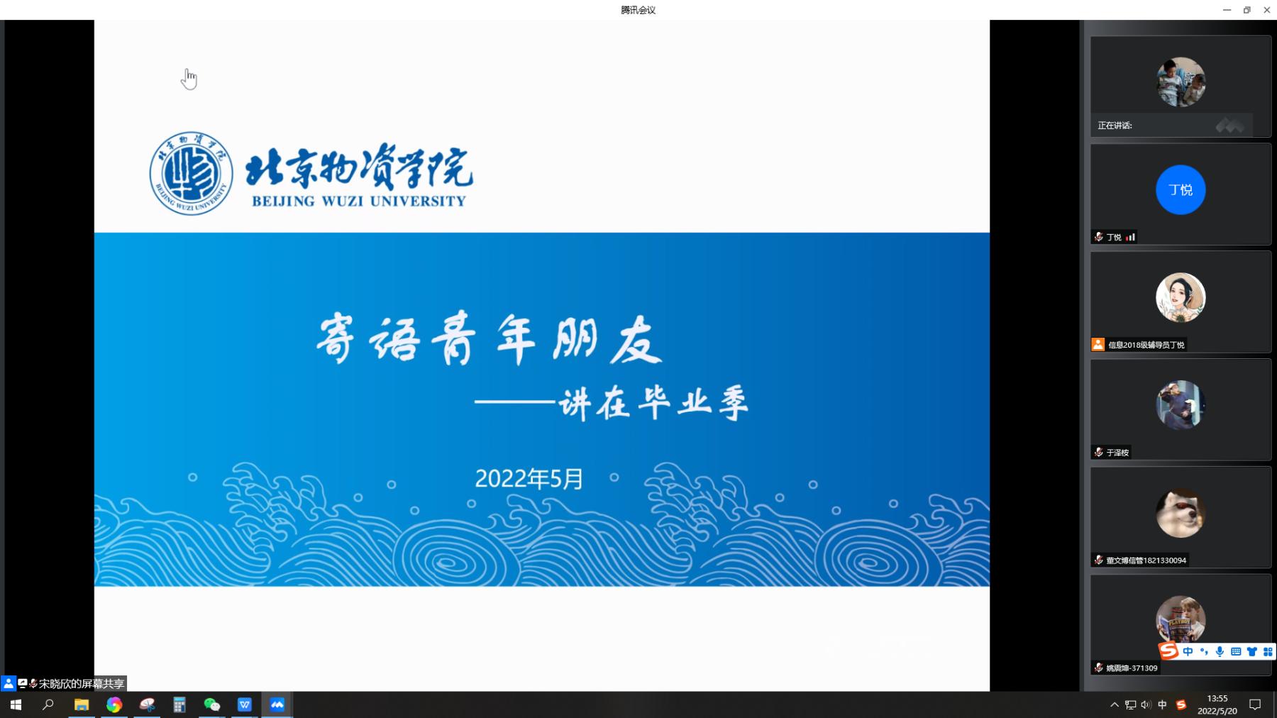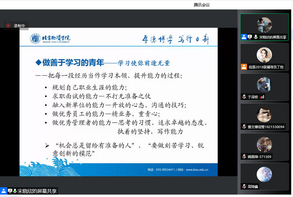 为进一步关怀beats365亚洲版官网2022届毕业生,在当前这个特殊的毕业季里为员工指明毕业、就业方向。2022年5月20日下午2点,北京物资公司党委副书记、工会主席宋晓欣通过线上会议为即将走上工作岗位的毕业生讲授了一堂以“寄语青年朋友——讲在毕业季”为题的形势与政策思政课。本课程由beats365亚洲版官网2022届毕业生辅导员丁悦主持,beats365亚洲版官网全体毕业生聆听了本次授课。