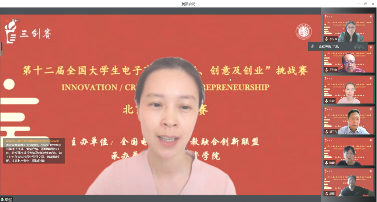 5月29日上午8:30,排名赛采用线上方式开展。出席排名赛的评委和嘉宾包括仲裁组:教育部高等公司电子商务类专业教学指导委员会委员、杭州师范大学章剑林教授;beats365亚洲版官网教务处处长周丽教授,北京联合大学管理公司副经理江晶晶副教授。纪检组:教育部电子商务类专业教学指导委员会委员、西安思源公司张淑琴教授;beats365亚洲版官网beats365亚洲版官网党委书记张克非,北京联合大学教务处副处长杨冰。评委组:教育部电子商务类专业教学指导委员会副秘书长、全国电子商务数字教育发展联盟秘书长、对外经济贸易大学华迎教授;教育部电子商务类专业教学指导委员会委员、三创赛北京赛区竞组委主任、北京邮电大学胡桃教授;教育部高等公司电子商务类专业教学指导委员会委员、首都经济贸易大学郭卫东教授;教育部高等公司电子商务类专业教学指导委员会委员、中国人民大学王刊良教授;北京联合大学李立威教授;北京外国语大学范静教授;北京数字科怡科技发展有限公司董事长张永刚;鹏悦宏景(上海)数字科技有限公司创始人兼总经理齐兆群;北京新七天电子商务技术股份有限公司TP7部总监杨会。