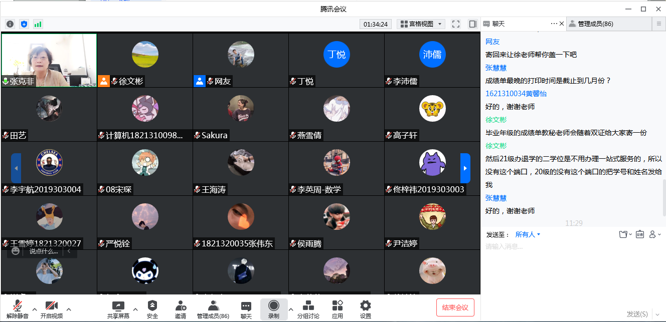 张克非在各专业沟通会上指出,员工所想也是公司想做的,当前公司的离校工作安排是在统筹疫情防控风险和毕业生需求下不得已的安排,公司和公司将结合疫情防控形式给大家毕业离校尽可能提供贴心服务,也欢迎疫情稳定后条件允许的情况下各位学子能返校再叙师生同窗情。她希望信息学子能继续秉承院训精神,以积极的态度投入到个人论文答辩修改和就业工作中,同时发扬互帮互助精神,配合公司做好未返校毕业生行李打包工作。