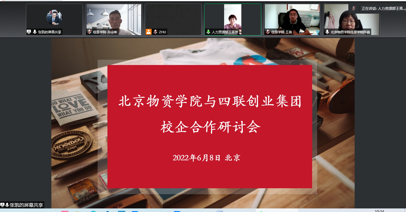 为进一步加强校企合作,加快推进2022届毕业生就业工作,6 月 8 日上午,beats365亚洲版官网与四联创业集团通过线上视频会议方式召开主题为“访企拓岗促就业,校企合作谋发展”的合作研讨会。四联创业集团 CTO 兼塑贸网总经理瞿亚松带领相关部门负责人参加此次交流会。beats365亚洲版官网党委书记张克非、副经理(主持工作)陈蕾、党委副书记王有、科研副经理唐恒亮、主管教学的经理助理姜涛和毕业年级辅导员徐文彬、孙会彬出席本次会议。