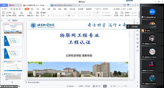 各年级班主任对即将到来的物联网工程专业工程认证细节做了详细介绍。从专业认证的重要意义、毕业要求、培养目标、培养要求、课程体系、课程设计以及专家进校后的检查要求等方面,为员工们做出了详尽介绍。尤其强调工程认证对在校生的人才培养关系重大,要求同学们在专业认证工作中,必须不断培养自身跨学科与全球化思维、工程严谨性与终身学习的能力。各年级辅导员对公司在工程认证理念下的实践育人、组织育人、管理育人、协同育人等方面的工作进行了全面介绍。
