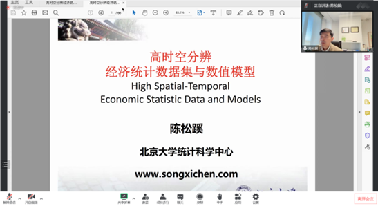 中国科公司院士、北京大学陈松蹊教授,作了题为“高时空分辨经济统计数据集与数值模型”的特邀学术报告。报告以大气污染监测网络数据提取污染排放信息为主旨,介绍团队八年来分析、追踪北方地区大气污染的变化的实证研究,给出大气污染评估的统计思路和方法,并展示目前统计学研究范式,探讨大气环境的研究范式对经济学和统计学研究的可借鉴之处。报告由北京大学房祥忠教授主持。
