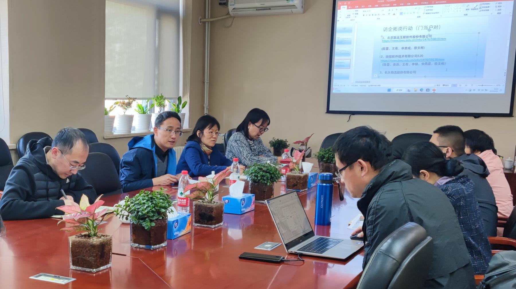 各系主任着眼于专业转型优化,立足本专业团队建设目标分别汇报访企拓岗工作具体措施。计算机与物联网工程系依照往年员工就业情况及企业匹配程度设置访企拓岗名单,密切联系行业头部企业。统计系与顺义区政府开展基层治理调研实习,提升员工对专业感知程度。大数据系从互联网、金融、流通三个领域确定对接企业,并依据专业特点设计实习实践环节。信息管理与电子商务系密切关注毕业生就业去向,已先后和北京致远互联软件股份有限公司、统信软件技术有限公司达成合作。