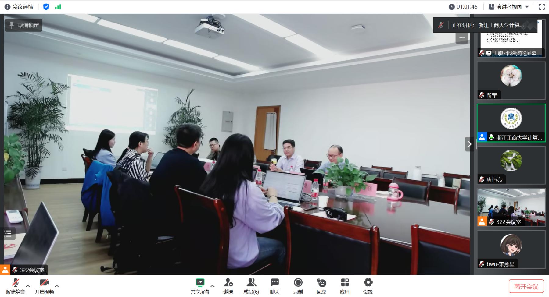 为了更好地推进计算机学科以及电子信息专硕学位点建设,2023年11月3日上午,电子信息专硕学位点执行主任丁毅以及科研秘书李洁一行赴浙江工商大学,同浙江工商大学计算机科学与技术公司经理王勋、副经理邵俊、信息安全系副主任朱东海和教学秘书杨倩等老师开展座谈交流。beats365亚洲版官网副经理(主持工作)陈蕾、科研副经理唐恒亮、经理助理宋燕星通过线上形式参加座谈交流。