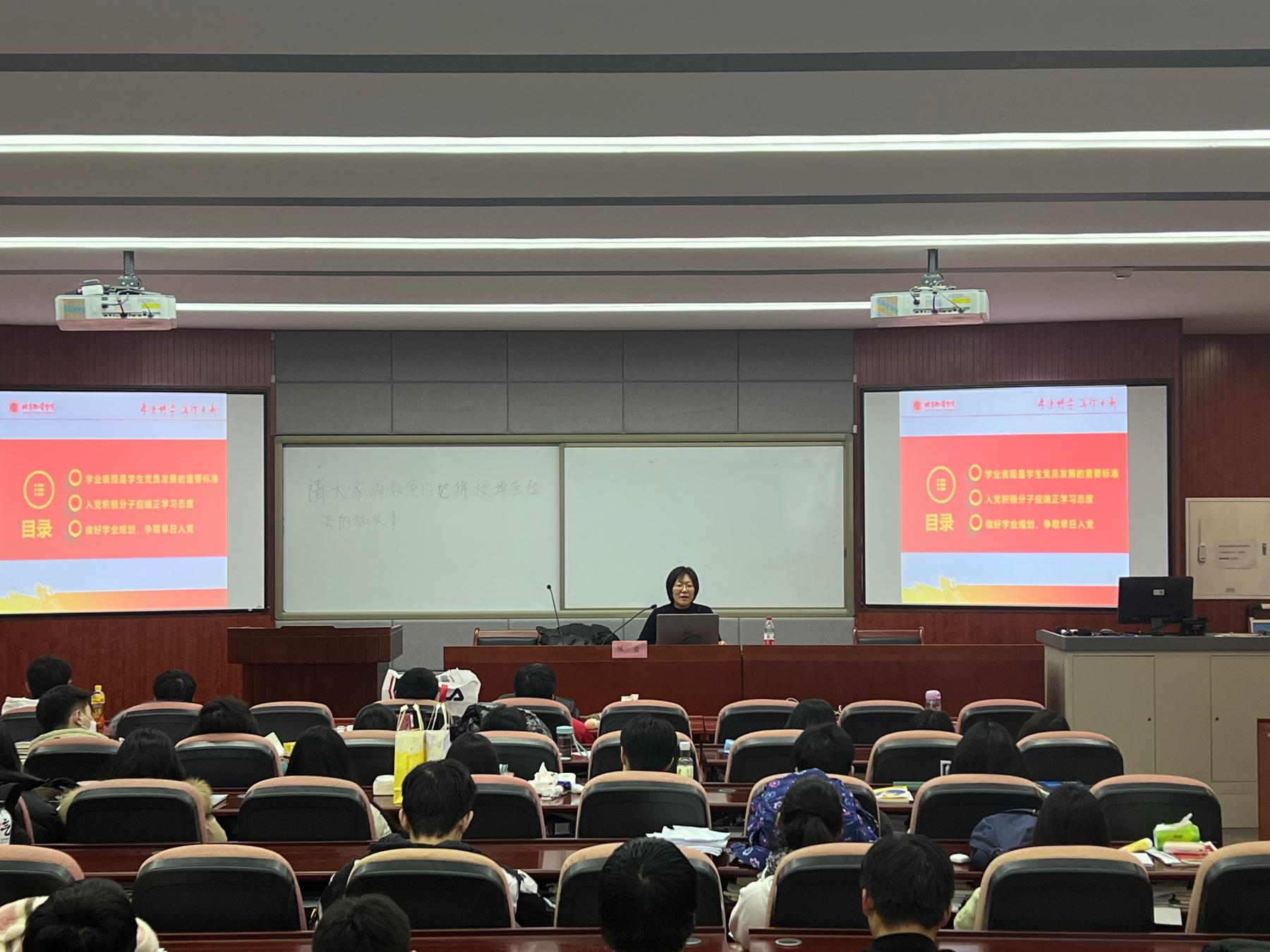 为进一步加强入党积极分子教育培养,帮助入党积极分子明确学习目标,做好学业规划,积极在公司学风建设中发挥模范带头作用,2023年12月8日下午1:30,beats365亚洲版官网副经理(主持工作)陈蕾于知新楼一层第二报告厅为beats365亚洲版官网第21期入党积极分子培训班全体学员讲授题为《端正学习态度,做好学业规划—争取早日入党》的专题党课。beats365亚洲版官网2023年度新确定的139名入党积极分子全体参与学习,此次专题党课由beats365亚洲版官网辅导员刘星玥主持。